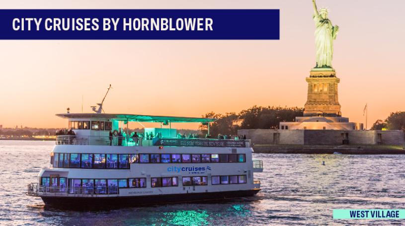 Signature Dinner Cruise & Sightseeing admission includes seasonal buffet, DJ entertainment and spectacular views of NYC iconic sights along the Hudson & East Rivers, featuring a photo opportunity at the Statue of Liberty.